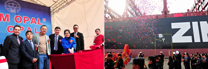 1月17日,我集團(tuán)與SEASPAN、ZIM公司共同為新船舉行了隆重的命名儀式。命名人蔡霞女士,以星(ZIM)上??偨?jīng)理李敬東先生,SEASPAN首席商務(wù)官李堃先生,SEASPAN資產(chǎn)管理部副總裁J.J. Meyer先生,SEASPAN資產(chǎn)管理部項(xiàng)目經(jīng)理蘇小華先生,以及我集團(tuán)董事長(zhǎng)任樂(lè)天先生、集團(tuán)副總經(jīng)理兼新?lián)P子造船總經(jīng)理杜成忠先生、集團(tuán)副總經(jīng)理周科偉先生、集團(tuán)副總經(jīng)理吉宏飛先生、新?lián)P子造船副總經(jīng)理倪榮先生等領(lǐng)導(dǎo)和嘉賓共同出席了命名儀式。